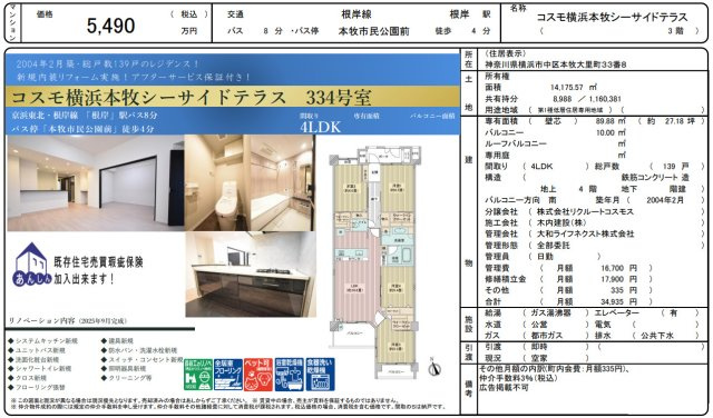 コスモ横浜本牧シーサイドテラス【仲介手数料無料】ペット可♪の基本情報