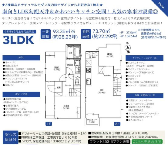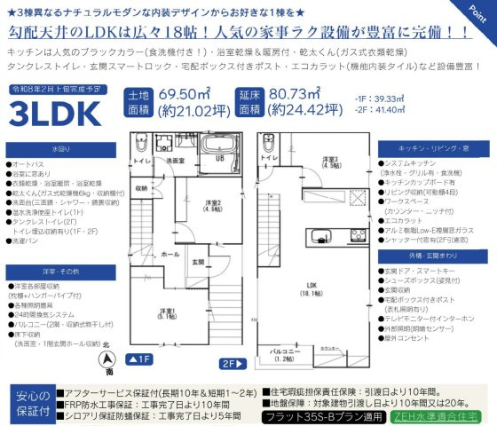 - 新婚さん向け / ファミリー向け / キャンペーン / 仲介手数料無料 / 室内洗濯機置場 / フローリング / バルコニー / 都市ガス / 公営水道 / 公共下水 / 24時間換気システム / 電気有 / 照明器具付き / 食器洗い乾燥機 / システムキッチン / カウンターキッチン / バス・トイレ別 / 追焚機能浴室 / 浴室乾燥機 / 温水洗浄便座 / 洗面台 / トイレ2ヶ所 / 床下収納 / TVモニタ付インターホン
