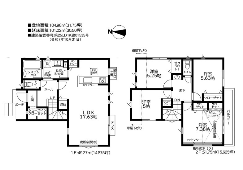 - 26.1坪~31.75坪(86.29㎡~104.96㎡)