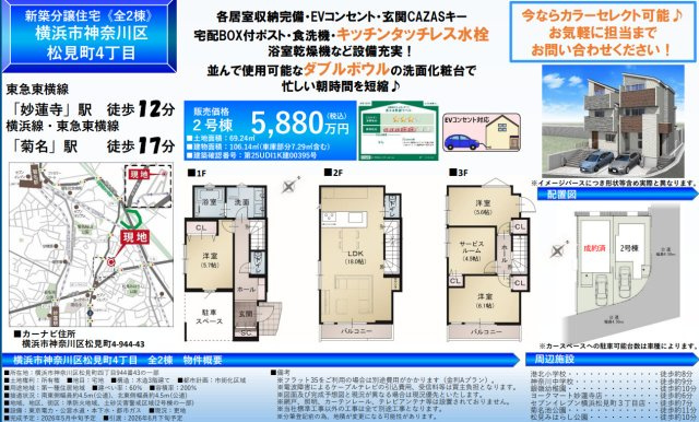 横浜市神奈川区松見町4丁目 新築戸建て【仲介手数料無料】で募集中の物件