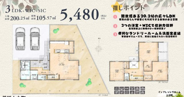 - 新婚さん向け / ファミリー向け / キャンペーン / 仲介手数料無料 / 室内洗濯機置場 / フローリング / バルコニー / 都市ガス / 公営水道 / 公共下水 / 24時間換気システム / 電気有 / 照明器具付き / 駐車2台可 / 食器洗い乾燥機 / システムキッチン / カウンターキッチン / バス・トイレ別 / 追焚機能浴室 / 浴室乾燥機 / 洗面台 / トイレ2ヶ所 / 床下収納 / ウォークインシューズクロゼット / TVモニタ付インターホン