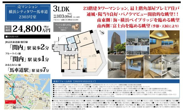 - ぜひ一度見ていただきたい、「横浜シティタワー馬車道【仲介手数料無料】ペット可♪」です。地上23階建ての物件です。徒歩2分の場所に駅があります。築22年の中古マンションです。当社オススメの不動産情報をお求めになるなら、お電話やメールでのお問い合わせ、又は直接お尋ね下さい。当社がしっかりとサポート致します。