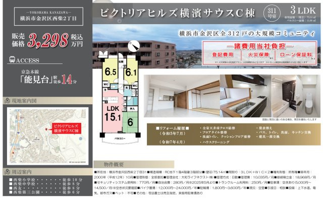 - マンションにどんな人が住んでいるのかも中古マンションなら事前に知れます。駅までは徒歩11分でアクセス可能です。横浜市金沢区の京急本線能見台周辺に詳しい当社なら、お客様のご希望に適した物件をご紹介致します。ご質問やご要望など、お気軽にお問い合わせ下さい。