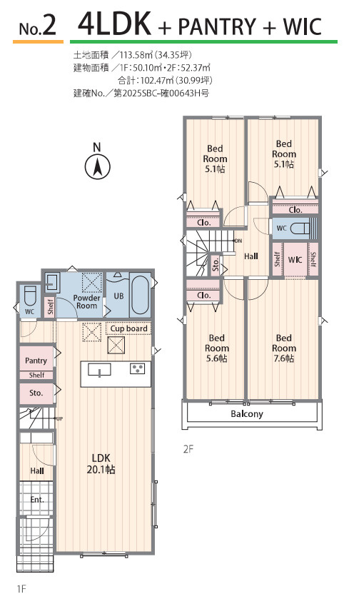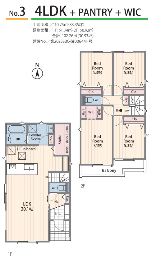 LDK 21.5帖/洋室 5.1帖/洋室 5.1帖/洋室 5.3帖/洋室 7.5帖 - 向き