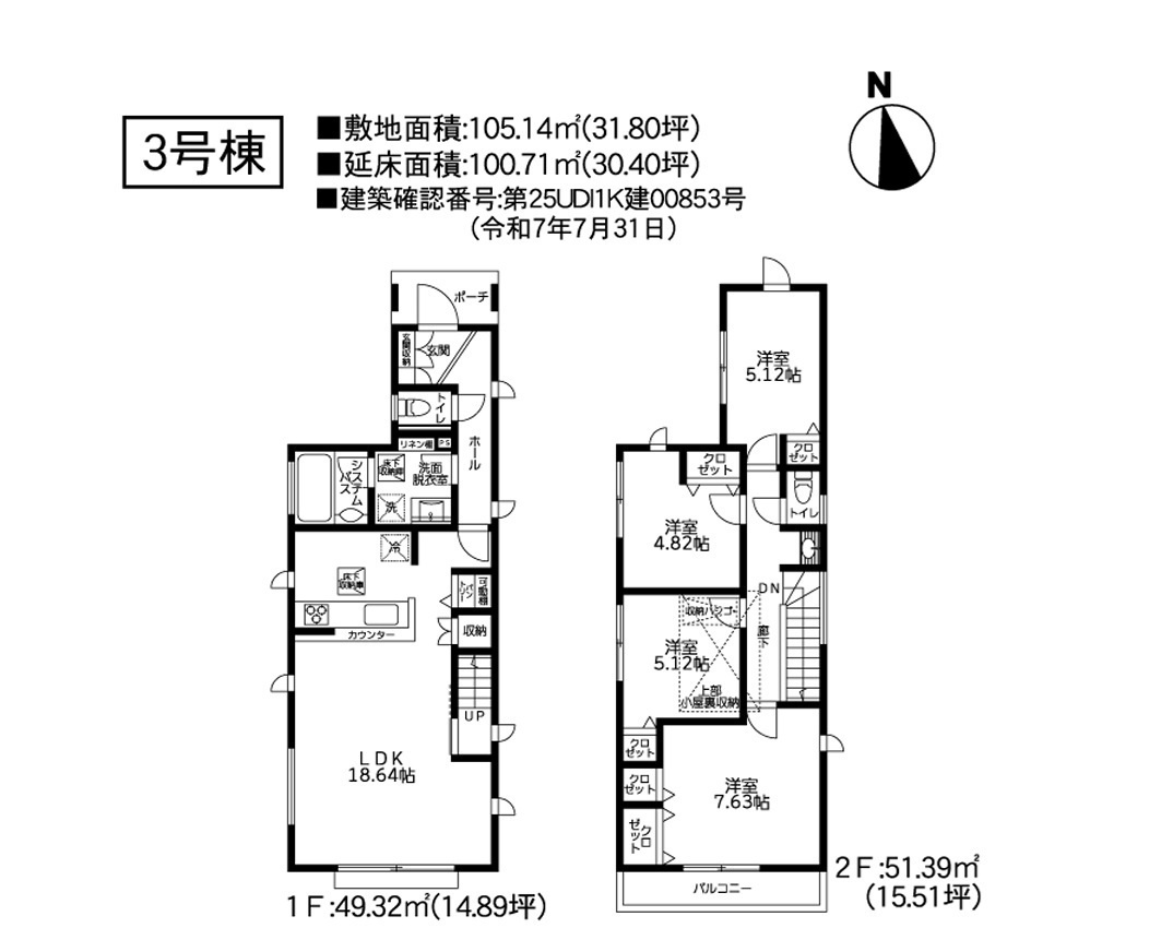 - 新婚さん向け / ファミリー向け / キャンペーン / 仲介手数料無料 / 室内洗濯機置場 / バルコニー / 都市ガス / 公営水道 / 公共下水 / 24時間換気システム / 電気有 / 照明器具付き / システムキッチン / カウンターキッチン / バス・トイレ別 / 追焚機能浴室 / 浴室乾燥機 / 洗面台 / トイレ2ヶ所 / 床下収納 / ウォークインクロゼット / TVモニタ付インターホン