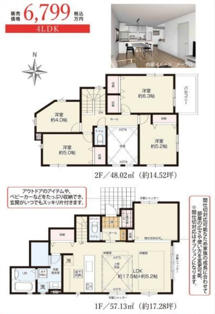 - 45.69坪~52.54坪(151.05㎡~173.70㎡)