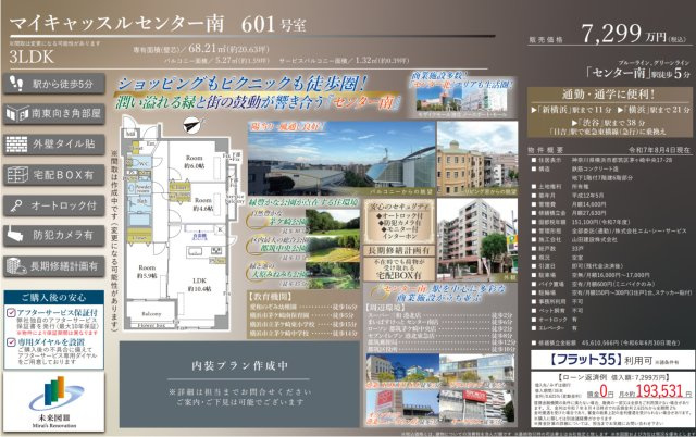 - こだわりポイント満載のマイキャッスルセンター南。デイリーヤマザキ センター南駅店まで徒歩7分と近場にコンビニがあるのもポイント。外壁タイル張りは、他の建材と比べ耐久性が高く、メンテナンス費用が安価なのが特徴です。駅へのアクセスも良好で、物件から徒歩5分圏内に駅がございます。人生で一度あるかないかの不動産購入で、失敗なんてしたら取り返しが付かないですよね。そんなことがないように、当社の経験豊富なスタッフがしっかりとサポート致します。