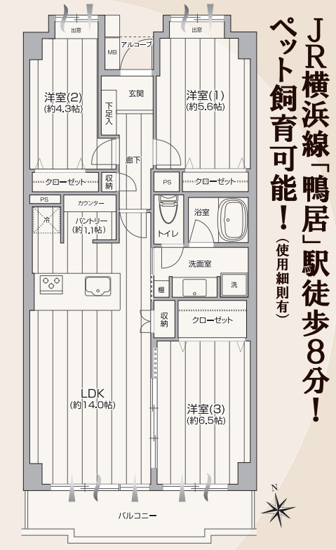 鴨居第1ハイツイーストヒル【仲介手数料無料】ペット可♪のコメント(おすすめポイント)