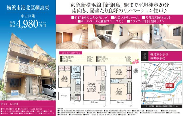 - 東急東横線綱島駅周辺物件:横浜市港北区綱島東5丁目 中古戸建て【仲介手数料無料】。スーパー「まいばすけっと 綱島東5丁目店」が物件から316mのところにあります。こちらの物件は築9年ですが、充実の設備が整っています。中古の戸建て物件は幅広い年齢層の方からニーズがあります。横浜市港北区には数多くの物件情報がございます。中でも交通を重視するのであれば、東急東横線綱島から近い物件をご検討下さい。