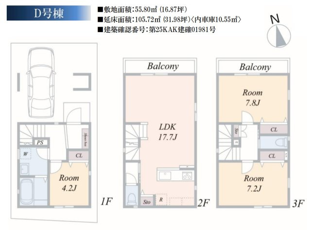 - 16.78坪~16.87坪(55.48㎡~55.80㎡)