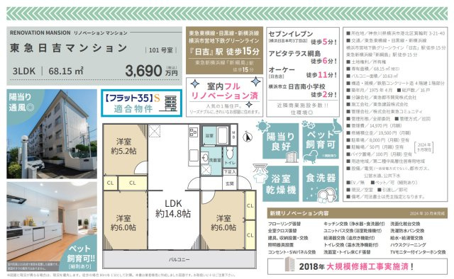 東急日吉マンション【仲介手数料無料】ペット可♪の基本情報