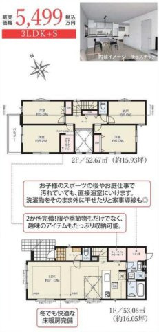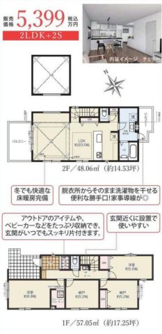 - 新婚さん向け / ファミリー向け / キャンペーン / 仲介手数料無料 / 室内洗濯機置場 / バルコニー / 都市ガス / 24時間換気システム / 電気有 / 照明器具付き / 駐車2台可 / システムキッチン / カウンターキッチン / バス・トイレ別 / 追焚機能浴室 / 浴室乾燥機 / 洗面台 / トイレ2ヶ所 / 床下収納 / ウォークインクロゼット / TVモニタ付インターホン